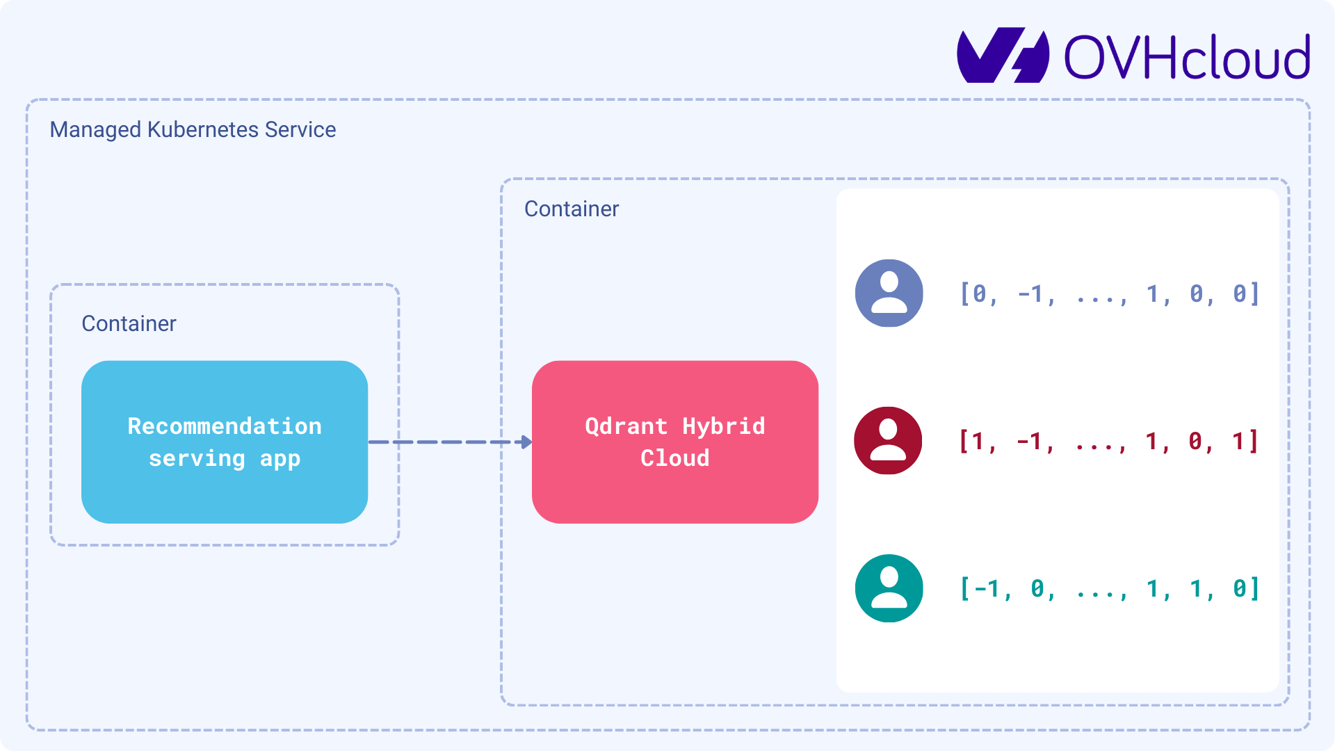 Privacy and Sovereignty: Since preference data is proprietary, it should be stored in a secure and controlled environment. Our vector database can easily be hosted on OVHcloud, our trusted Qdrant Hybrid Cloud partner. This means that Qdrant can be run from your OVHcloud region, but the database itself can still be managed from within Qdrant Cloud’s interface. Both products have been tested for compatibility and scalability, and we recommend their managed Kubernetes service.